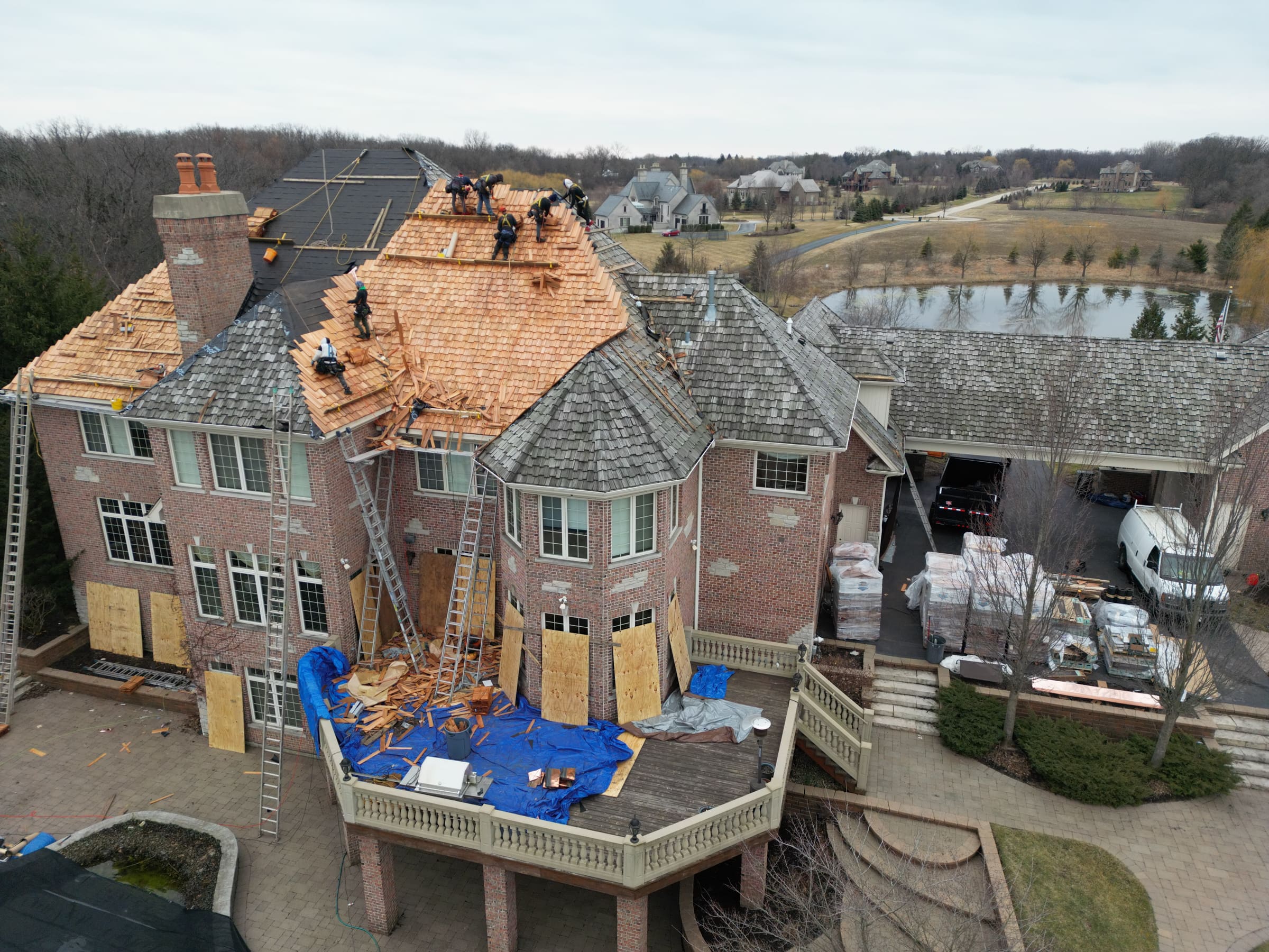 As a South Barrington roofing company experienced with large, complex homes, we understood the urgency. Ongoing leaks meant time was critical, and the roof’s intricate layout required careful planning and execution.