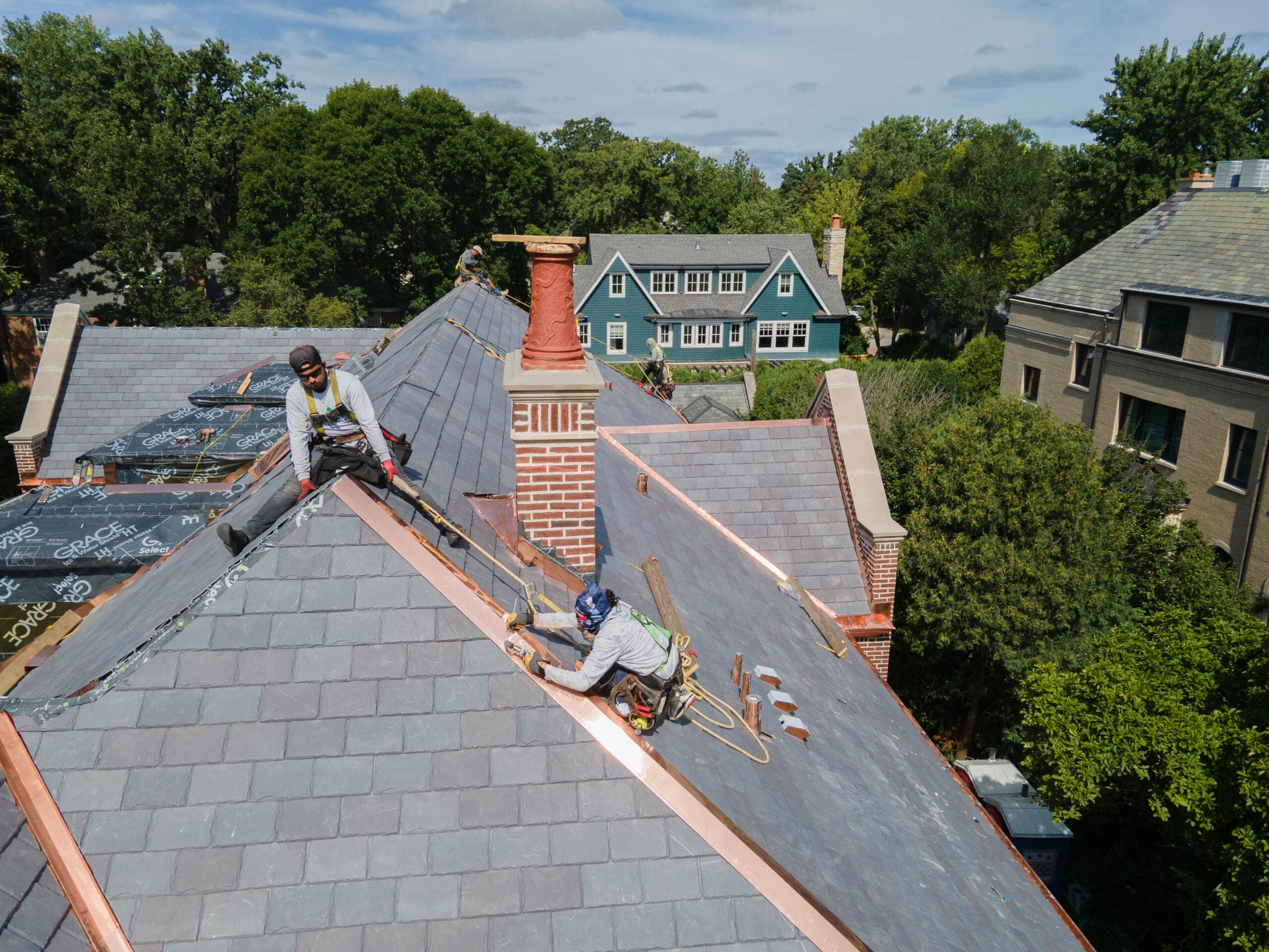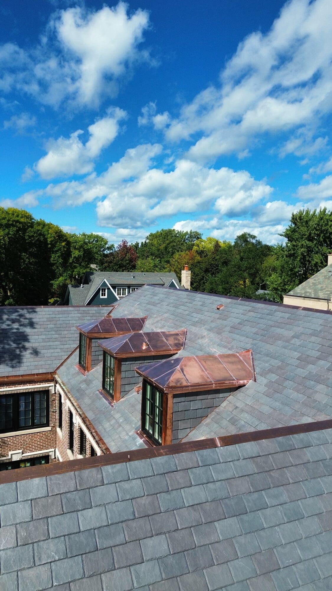This Kenilworth home, located just 200 yards from Lake Michigan, had endured more than 50 years of intense lake-effect weather. The original natural slate roof, while beautiful, had become brittle over time. Harsh winters, salt air, and seasonal storms had gradually compromised the system, leaving the home vulnerable to leaks and deterioration.